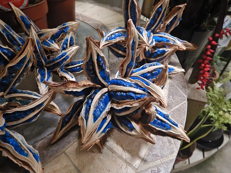 久しぶりに『旅人の木の種』入荷しました。このブルー、天然の色なんですよ(*‘∀‘)驚きますよね(≧▽≦)ディスプレイに結構人気の雑貨です( *´艸`)
