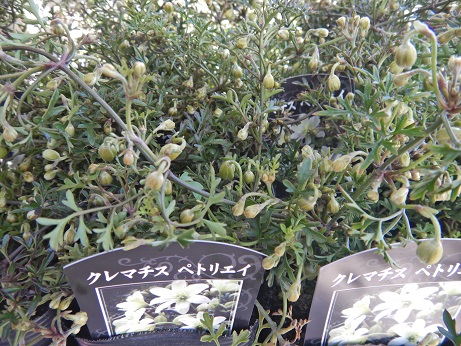 大人気クレマチス『ペトリエイ』花付きも入荷してきました(*´▽`*)お花が咲くとまた可愛い( *´艸`)