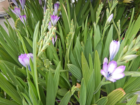 バビアナ『ストリクタ』は紫色とクリーム色が入荷してるんですけど、球根植物で育てやすい小さめのお花です♪