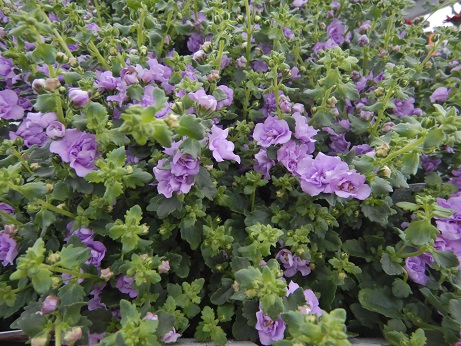 ペチュニア『ラブリーアイ』の兄弟品種『ブルーフラッペ』入ってます(*^-^*)ラブリーアイ、ここ3年ぐらいの品種なんですけど、超育てやすい品種です(*´▽`*)最近見本鉢を作って分かったんですけど、花付き良し、株の広がり良し、あと、切り戻し後の復帰もきれいだし、何より、花ガラの離れがとっても良い。ペチュニアって、お花終わった後の花ガラ摘みの時、手がベタベタになるの、イヤじゃないですか?ラブリーアイ、結構簡単にお花が取れて、手が汚れにくいんですよ( *´艸`)けっこう画期的な品種だと思ってます(*‘∀‘)(㊟コバの個人的見解です(笑))