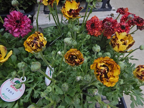 ラナンキュラス、変わったの見たら入れちゃうんですよ…『イカロスシリーズ』入れちゃったんですけど、左上の赤紫の子は売れちゃいました(*´ω`*)現品限りなので、お電話で、在庫確認してね(*´ω`*)