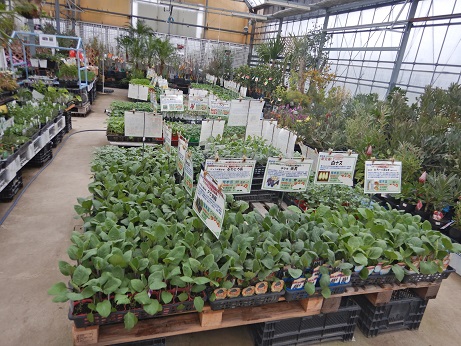 さてさて、花みどり、店内のほうはお野菜苗が入り始めて、春が来た感じです(*'▽')まだ寒い日があるかもしれませんので、ビニールをかけてほしいところですが、トマト、ナス、ピーマン、キュウリ、カボチャのメインの品種が入荷してきてます(*´ω`*)