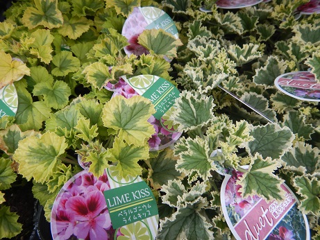ぺラルゴニウムもいろんな種類が入りました(*^-^*)人気のグランパッソや、あと、一押し『ノバ』は香りのあるお花♪♪