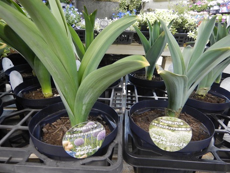 宿根草のコーナーの方に回ってますけど、アリウムの『グラディエーター』と『マウントエベレスト』の苗が入荷してます( *´艸`)ギガンチウムの紫と白です。もっというと、ネギ坊主のおっきいやつです(笑)お庭に高さが出て、結構カッコいいんですよ(*'▽')