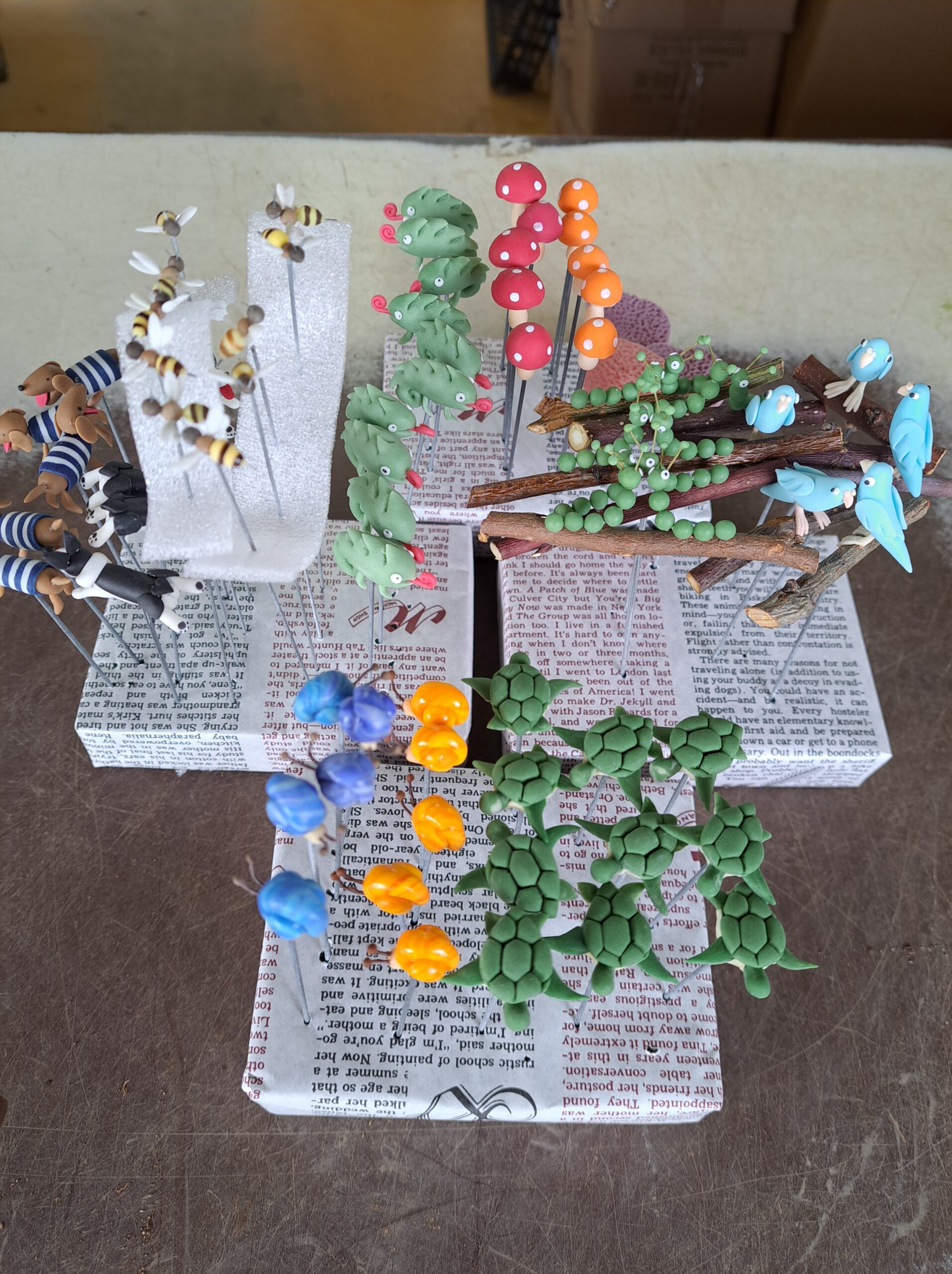 レジ前のミニピックコーナーに新しいのが仲間入りしました(*^-^*)ダックスフントや青い鳥、キノコがカワイイ♪♪人気のハチは再入荷してます(*^-^*)水に濡らせないのがネックですけど、小さな寄せ植えにもかわいいピックなので、ぜひレジ来た時に見てみてね(≧▽≦)
