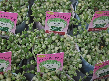 とってもきれいな斑入りのグリーンネックレスやアエオニウム『鳳凰錦』が入りました(*'▽')夏が来るから難しくなってくるけど、見ると欲しくなるのよね~(*´▽`*)舞乙女も久しぶりに見た(*'▽')高層ビルみたいで面白いよね( *´艸`)