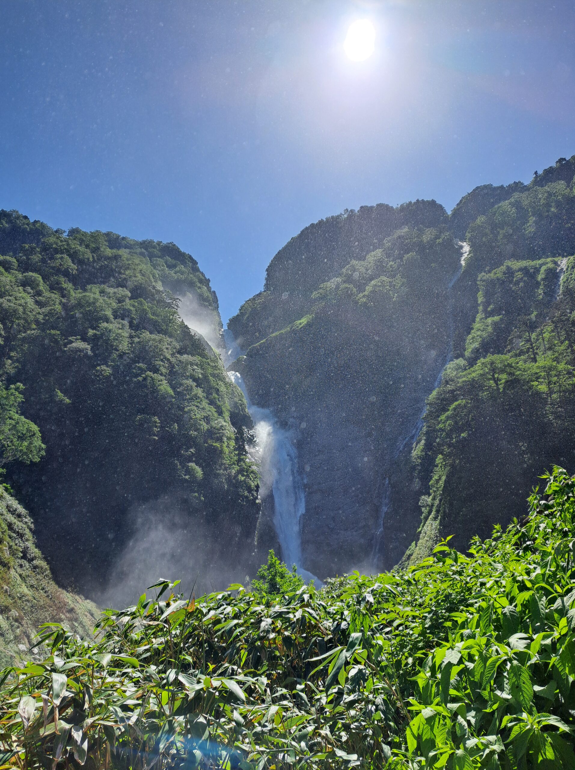 雨の後ということもあって、植物たちが生き生き♪♪空のブルーと植物の緑、滝の白とコントラストが最強にきれいでした( *´艸`)