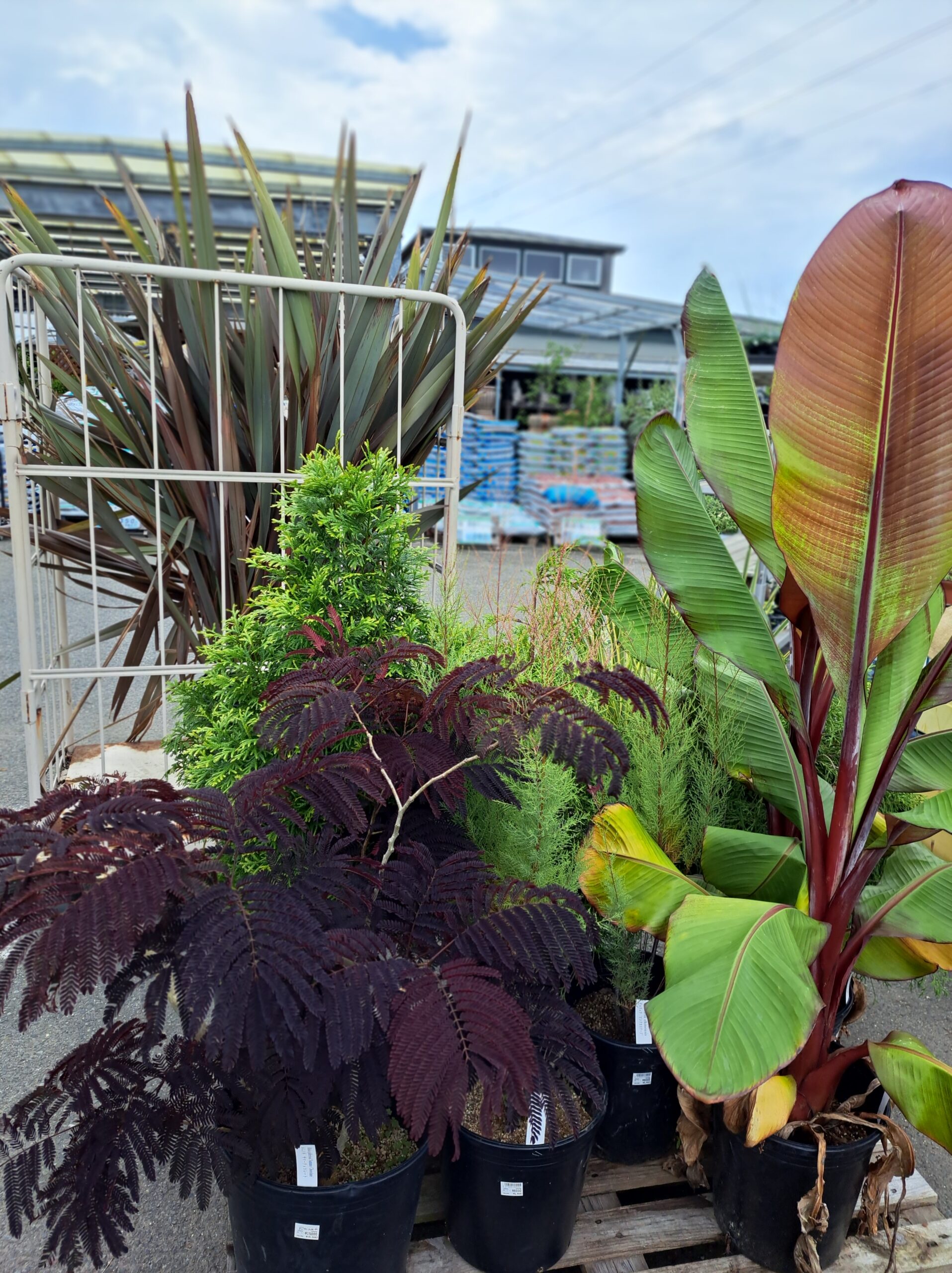庭植えようの大株ギボウシやリーフがかっこいいネムノキ、エンセテマウレリーやでっかいニュウサイランが入ってます(*´ω`*)変わった庭木をお探しの方いらっしゃいましたらぜひ(*^-^*)