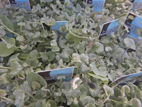 シルバーリーフが涼し気でいいかも(*'▽')ディコンドラ『シルバーフォール』入ってます(*'ω'*)グランドカバーにするなら緑葉の『エメラルドフォール』のほうがキレイに広がりますが、寄せ植えに入れるなら流れが出て可愛いですよ(*´▽`*)