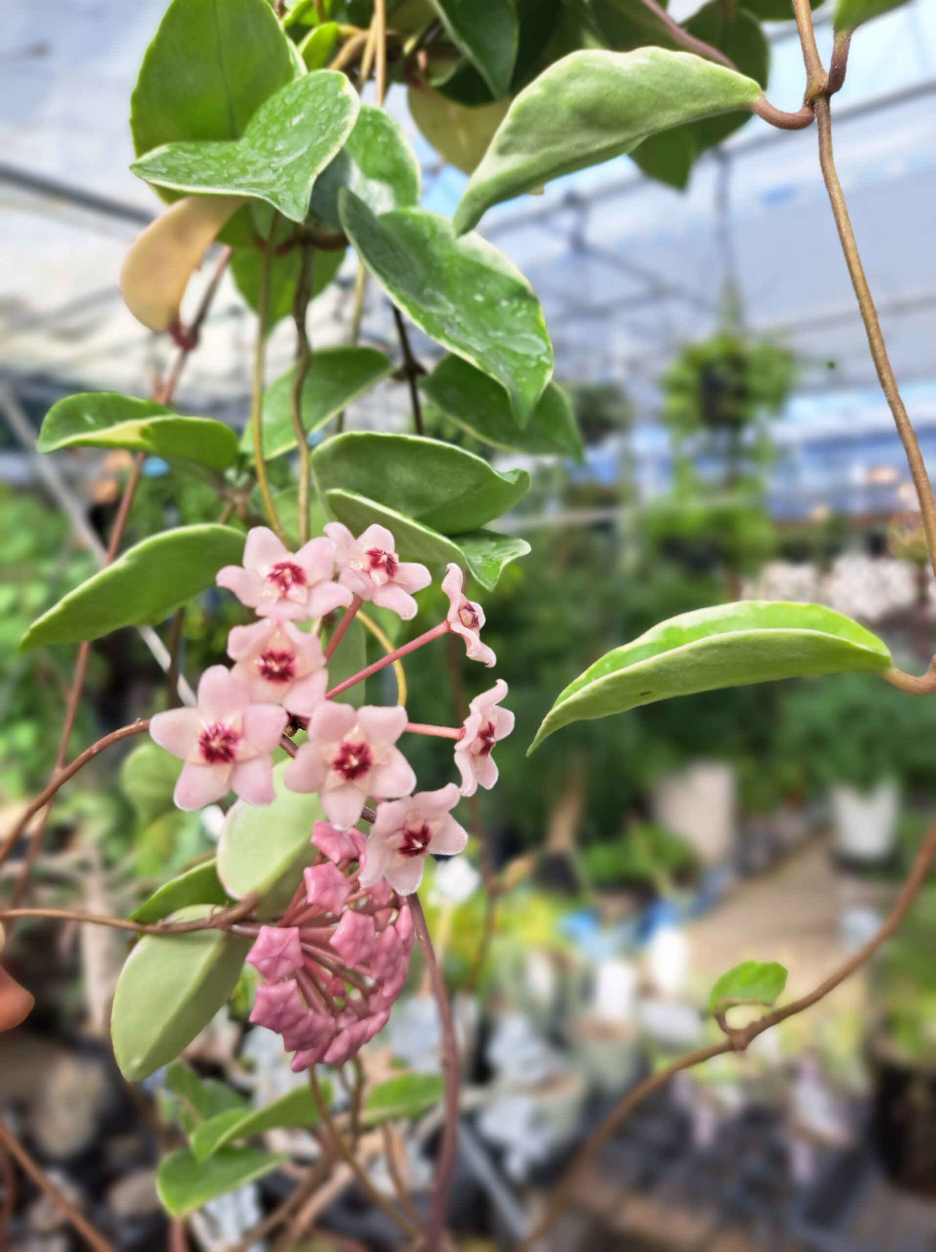 吊り鉢でホヤが少しずつ入ってきてます(*´ω`*)お花咲くと可愛いんですよね♪♪別名:サクラランというだけあって、めっちゃ可愛いお花です( *´艸`)