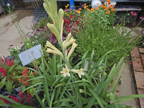 チューベローズのお花が咲き始めました( *´艸`)この子、夜になったら香りのするステキなお花です(*^-^*)お昼はあまり香りがないので、お店ではお花見ていただくだけなんですけど(;・∀・)