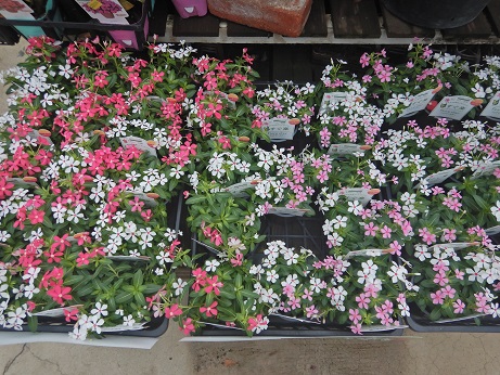 お花の新着はニチニチソウ『すぐ楽フェアリーベル』夏に強いミニのニチニチソウが2色植えになっててそのまま植えこんでも楽しめる一株です(*'▽')