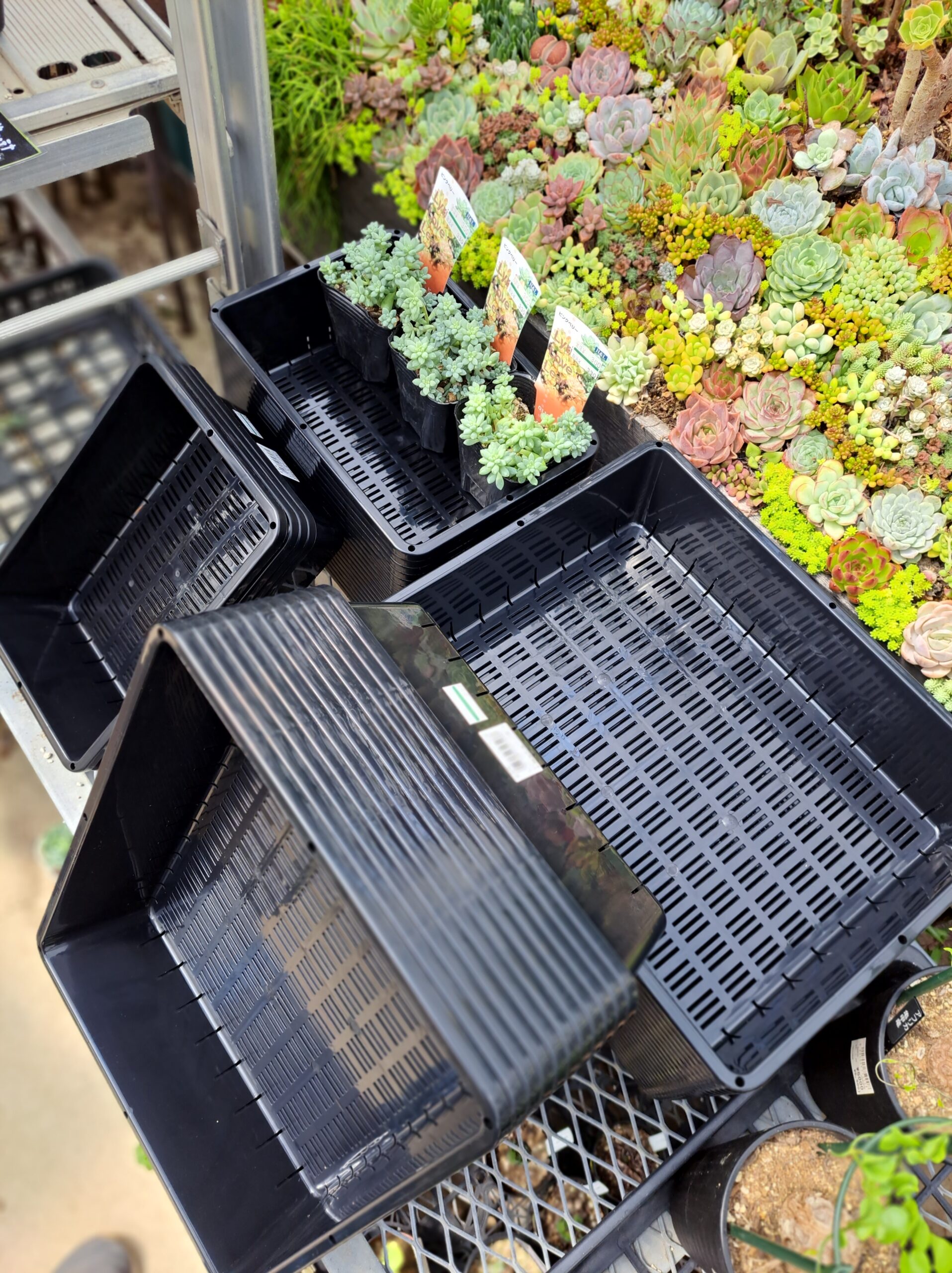 多肉植物コーナーに小さめの育苗トレーを入れてみました(*'▽')多肉の移動や、挿し木の時に結構便利(*´ω`*)