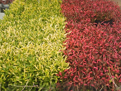 ブルーのペンタスや赤葉がかっこいいアルテルナンテラ、オレンジ色の実がかわいいトウガラシ『セドナサン』なんかは、ハロウィン仕様の寄せ植えに入れても雰囲気が作れそうで楽しい(≧▽≦)