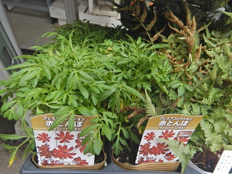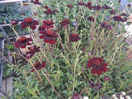これからのシーズン、雰囲気がちょうどいいチョコレートコスモス。定番の『チョカモカ』と変わり色『赤とんぼ』入りました(*'▽')