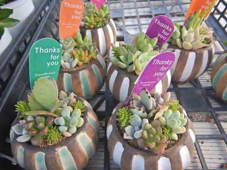 多肉植物の小さな寄せ植えは贈り物にも人気です♪♪