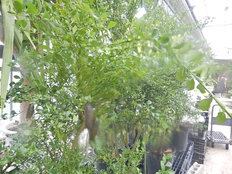 フィンガーライムの大株が入荷しました!!(≧▽≦)すっごい実がいっぱいなってるの(*‘∀‘)フィンガーライムはソーセージみたいな形した柑橘類で、中にはは2~3ミリの粒々の実がいっぱい詰まってます(*'ω'*)これが、小さな一粒でもすっごいライムの香り。バーなんかでシャンパンなんかに入ってたら超オシャレ(*‘∀‘)口の中でライムの香りが広がります(*'ω'*)