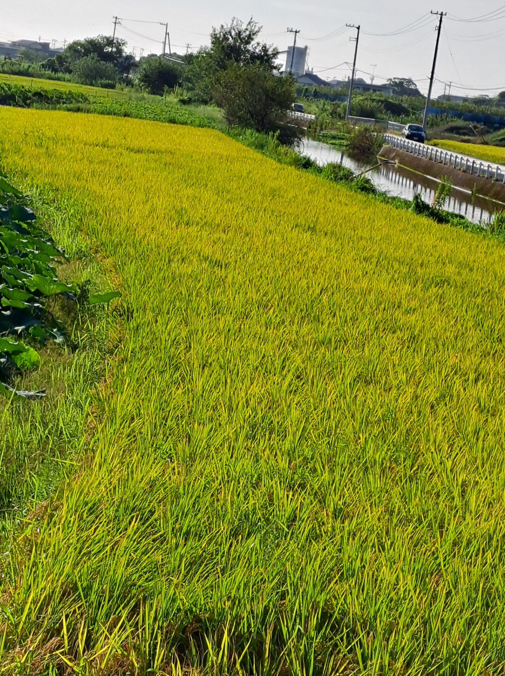 稲穂が色づいてきれいな時期ですね(*^-^*)風がサワサワ吹き抜ける様子が秋らしくて大好きです。眺めてたら、まだ暑いんですけどね(*´ω`)