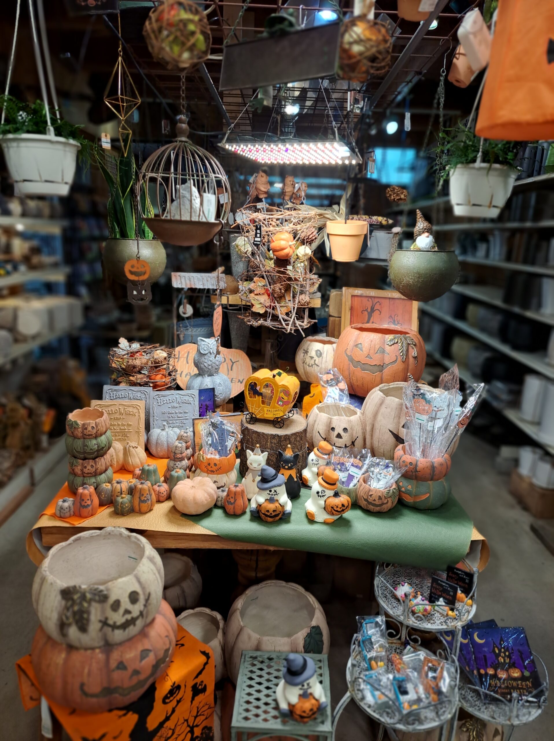 ハロウィン雑貨でコーナー作ってみました(*'▽')かぼちゃの鉢が可愛い♪♪植えなくても置物としても楽しいですよね(*^-^*)