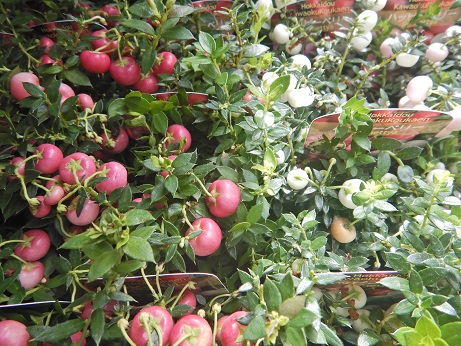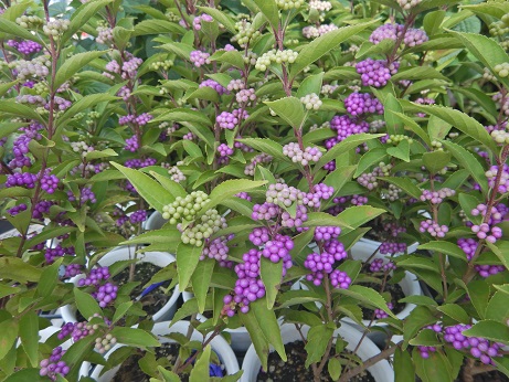 秋の実物、紫式部、実付きで入荷してます☆鉢植えで入荷してくるのはほんとは『コムラサキシキブ』なんですけど、かわいいからどっちでもいいや(*´ω`*)(本物の紫式部はもう少し実の付き方がまばらな感じです)
