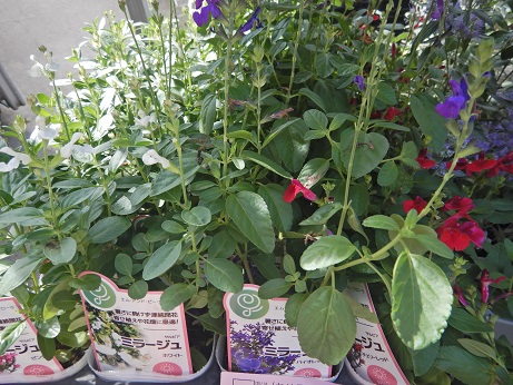 香りが良くて育てやすいラベンダー『グロッソ』の大株、一部の方からは絶大なる人気のあるホワイトセージ、斑入りのリーフがとっても可愛いミントブッシュは香りもステキです( *´艸`)