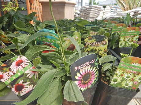 お庭に植えっぱなしにして長く楽しめる宿根草コーナーにはエキナセアとガーデンガーベラ、お庭用のアルストロメリアが入りました( *´艸`)毎年株が大きくなるので楽チンです( *´艸`)