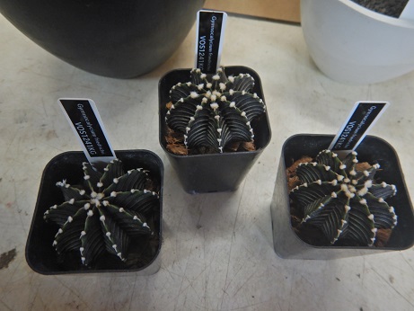 ブラックカラーのギムノカリキウム『フリードリッヒ VOS1241KG』とドルステニア達。現品限りなので、気になる方は早めに見に来てね( *´艸`)