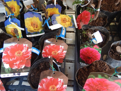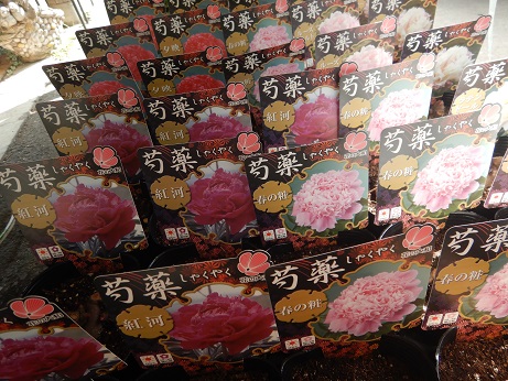 牡丹苗は芍薬に接ぎ木されてて、根元部分が芍薬になってます。根元に接ぎ木部分が見えてると思うんですが、植え付ける時は、この接ぎ木部分を土の中に埋めてしまって、牡丹から根を出させてやります。これ、やってないと、何年かして急に牡丹だったところに芍薬が生えてくることがあります(;・∀・)びっくりします(笑)