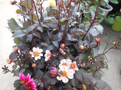 今週はダリアが結構キレイ(*´▽`*)おすすめは『カクテルアミーゴ』シリーズ!!黒葉のダリアなんですけど、お花の色とのコントラストが超ステキなの( *´艸`)