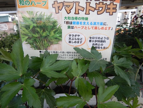 ハーブコーナーに『ヤマトトウキ』入りました(*^-^*)どなたか探してたお客様いらしたんですよね~。入りましたよ~(*'▽')「根は生薬、葉は食用」とされてて、体に良いらしい(*'▽')