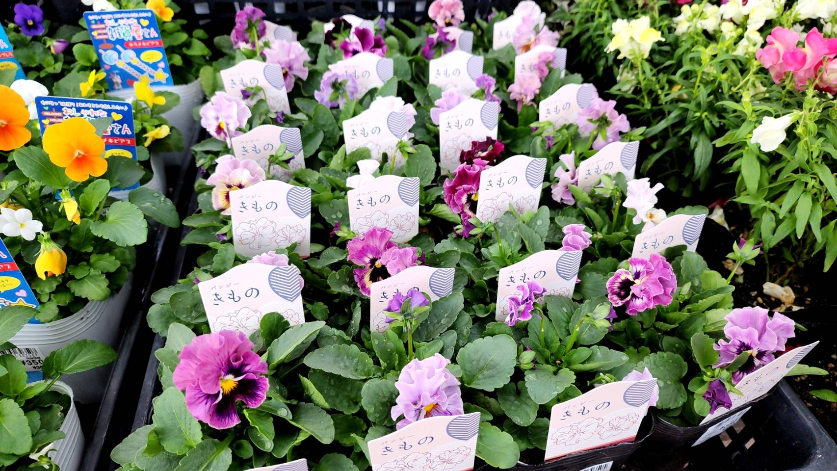 『きもの』は新着品種(*´▽`*)フリンジのパンジーで、ちょっと和な感じがステキな子です(*'▽')
