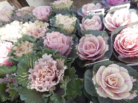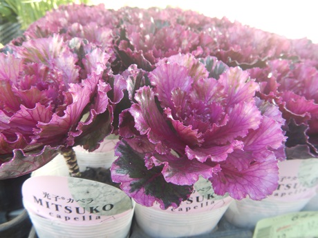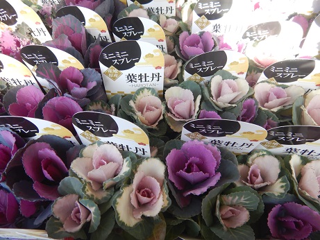 ハボタンコーナーでは派手な子やミニ系のミックスハボタンがいろいろと入りました(≧▽≦)色づくと大きくならないのでリングに楽しい花材です♪♪見本にいろいろ作るので、ぜひ見てみてね(*´▽`*)
