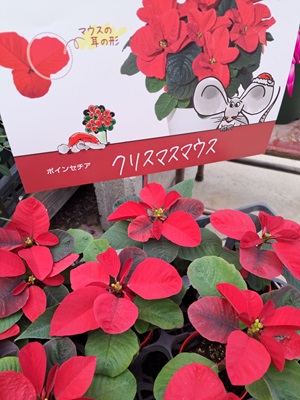 鉢花コーナーにちびちゃんだけどポインセチアの『クリスマスマウス』入ってます( *´艸`)葉の先が丸くてネズミさんみたい♪♪かわいいポインセチアです(*^-^*)