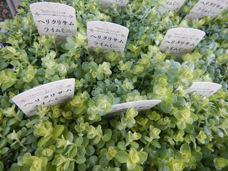 大人気!リッピア『フィリップフロップ』再入荷です♪♪ヘデラ『白雪姫』やヘリクリサム『ライム』も寄せ植えに重宝します(*´▽`*)