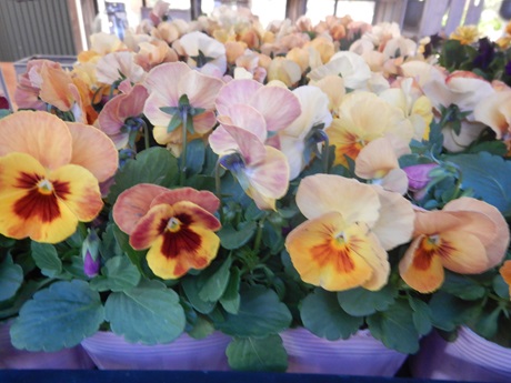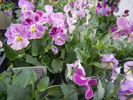 さて、店頭花苗コーナーでは、今週もパンジービオラが楽しい(≧▽≦)まずは今週のスミレコーナーより( *´艸`)