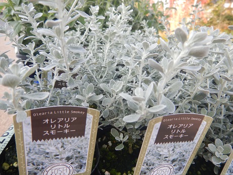 冬らしい寄せ植えにしたいときはシルバーリーフがおススメ♪♪オレアリア『リトルスモーキー』はリーフも可愛いので冬の演出にステキです( *´艸`)