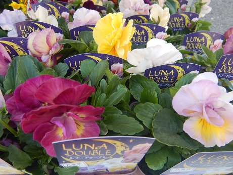 ちょっと珍しい八重咲パンジー『ルナ・ドゥーブル』入りました。豪華なお花がちょっとエレガントです(*´▽`*)寄せ植えとかに入れてみたいかも( *´艸`)