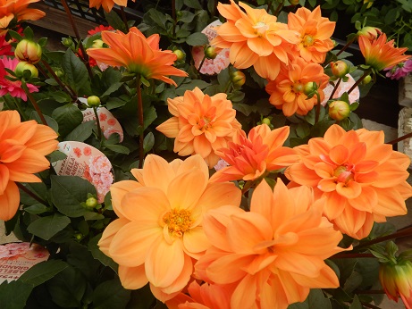 ちょっと深いオレンジ色のダリア『キャラメル』。ダリアは球根植物なので、植えっぱなしOK です(*´ω`*)