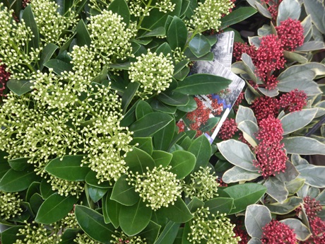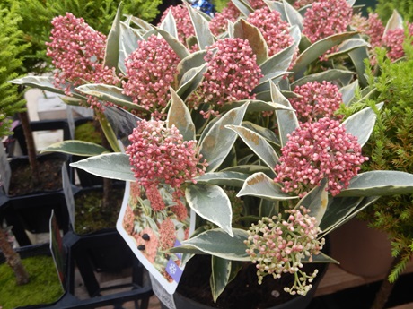 スキミアのちびとでっかい斑入りの『マジックマーロー』入ってます(*^-^*)日陰で楽しめる子で、蕾の期間が長いんですけど、これが河合の( *´艸`)