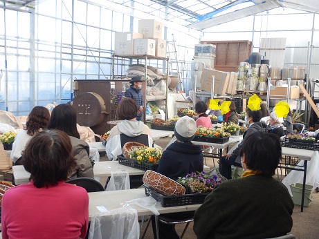 風が強かったですけど、お昼は気温が上がって暖かい午後。こんな温かいとお花触るのも楽しいですよね~(*´▽`*)今回の講習会は満員御礼。先生のお話も弾みます(*´ω`*)