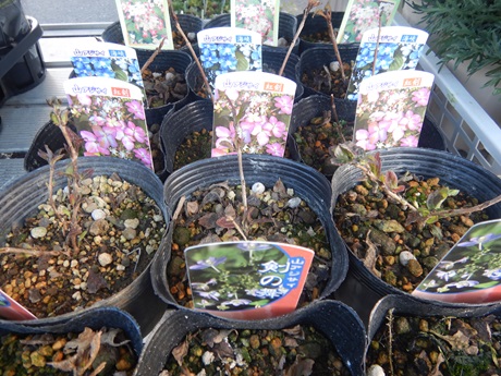 ちょっとめずらしい絞り柄のラークスパー『かぐや姫』と花無しで入荷したヘリオフィラ『ブルーインパルス』。ヘリオフィラはいつも花付きで入荷することが多いので、この時期から育ててもらうと株が育っていっぱいお花が咲くこと間違いなし!!少し背が高くなる子ですが、サワサワ風に揺られるブルーのお花…ちょっと楽しみ( *´艸`)