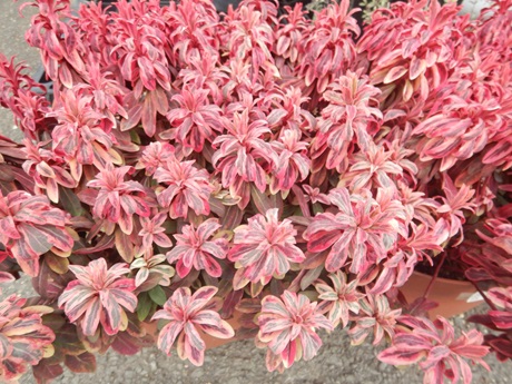 花みどり入口辺りにすっごいきれいな色で鎮座してるユーフォルビア『フロステッドフレーム』。夏場はクリーム色、寒くなるときれいなオレンジ色になるステキなユーフォルビアです( *´艸`)暑さ寒さに強く、お水も乾かし気味で育てるので手間いらず♪♪小さい苗を探してる方が結構多かったので、今回リーフコーナーに並んでます(*^-^*)ドライガーデンにもおススメの植物だよ~(≧▽≦)