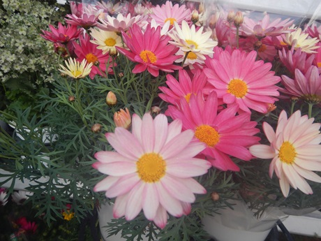 写真半分だけど、ボンザマーガレット今期の全色入荷してます(≧▽≦)ちょっとコンパクトに育つので鉢植えでも簡単♪♪