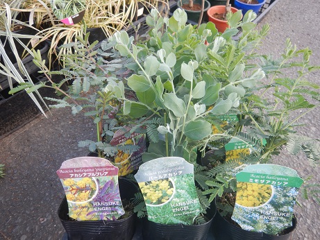そろそろアカシアの季節!!チビ苗や大苗や、ちょっと珍しい枝垂れアカシアの苗やコンパクトタイプのアカシア『テレサ』も入りました(≧▽≦)枝垂れとテレサは限定なので気になる方はお早めに( *´艸`)枝垂れの大株もあるので結構咲いてくるのが楽しみです(*'▽')