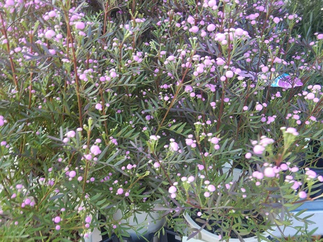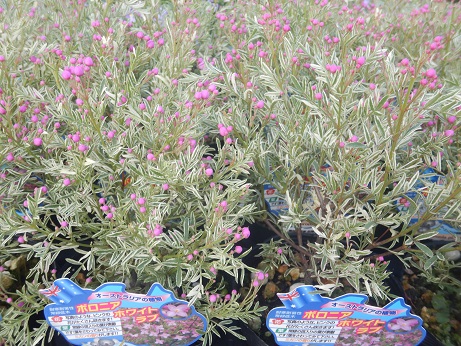 ボロニアは星形のピンクのお花が咲くのが可愛いんですが、まん丸の蕾の時も可愛いの♪♪緑葉、銅葉、斑入り葉が揃って、葉色でも楽しめます♪♪