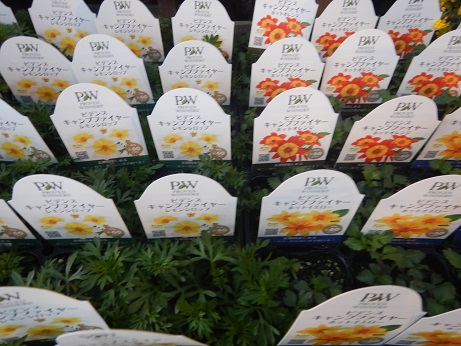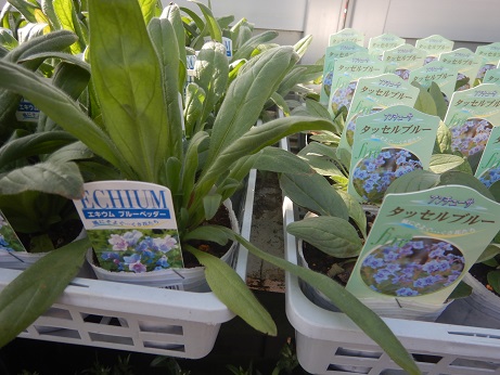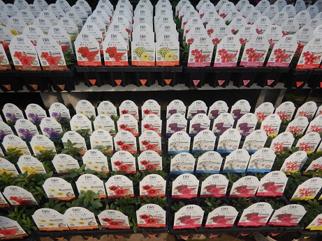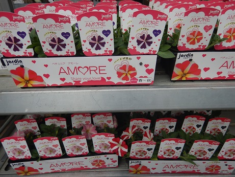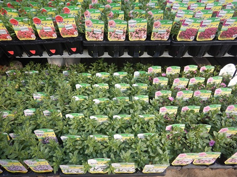 一番便は、性質が強いのが魅力的なハクサンの『スーパーベル』&『スーパーチュニア』。そしていろんな色味が楽しいハルディンの『カリビアーナ』&『小町シリーズ』その他の色も華やかで楽しい(*´▽`*)あ、写真無いけど、『さくらさくら』『桃色吐息』も入荷しました(*'▽')