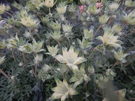 フランネルフラワーの新品種『ハニーマスカット』はいつもは真っ白なお花がほんのりクリーム色でちょっとカワイイ( *´艸`)ドライフラワーにも重宝する手触りのいお花です(´▽`*)