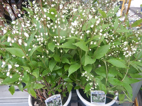 クチナシと言えば『クチナシの実』。ハーブとして染料に使えるんですが、このクチナシの実、一重のクチナシにしか成らないんです(*´ω`)今回、八重咲きと一重咲き両方ともにゅうかしてますので、実なりがよければ茶色のロング鉢のほうです。わからなかったらスタッフに聞いてくださいね(*^-^*)ちなみに一重と八重とお花の雰囲気がだいぶ違うので、ネットでチェックしてみてね(*'▽')