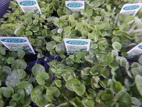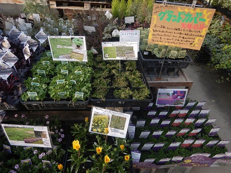雑草抑えにグランドカバーないですか?ってよく質問されるんで、リーフコーナーにグランドカバーおススメラインナップを並べて置きました(*'▽')