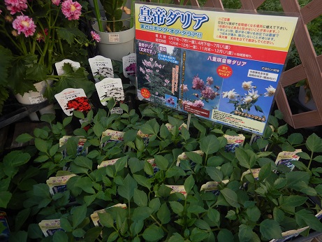 秋の空を彩るお花『皇帝ダリア』高さ3mにもなって咲く姿がステキです( *´艸`)お花のころに探しに来られる方多いんですけど、今から植えてじっくり秋まで育てるタイプです♪♪今年は一重ピンク、八重ピンク、白の3色揃って入荷してます(*´ω`)